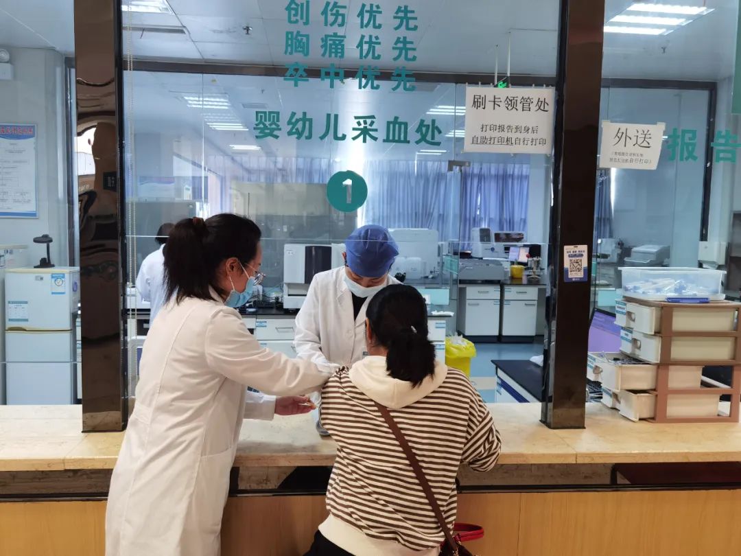 “不要擔心,這是暈血現(xiàn)象,現(xiàn)在千萬不要回想剛才采血的畫面,你稍微坐一會兒,看看感覺怎么樣”。不一會兒,主管檢驗技師于瑩瑩端來了一杯白開水,崔愛麗在確認水溫合適后,慢慢地喂給病人喝。