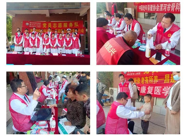 為推動(dòng)學(xué)習(xí)貫徹習(xí)近平新時(shí)代中國(guó)特色社會(huì)主義思想主題教育走深走實(shí),進(jìn)一步弘揚(yáng)中華民族尊老、愛(ài)老、敬老的傳統(tǒng)美德,滿足人民群眾對(duì)美好生活的向往,2023年重陽(yáng)節(jié),漯河市骨科醫(yī)院(漯河醫(yī)專二附院)黨委組織由來(lái)自骨科、內(nèi)科、外科、婦產(chǎn)科、眼科、社會(huì)工作部的黨員志愿者、醫(yī)療專家21人到雙匯國(guó)際花園開展重陽(yáng)節(jié)大型義診活動(dòng)。