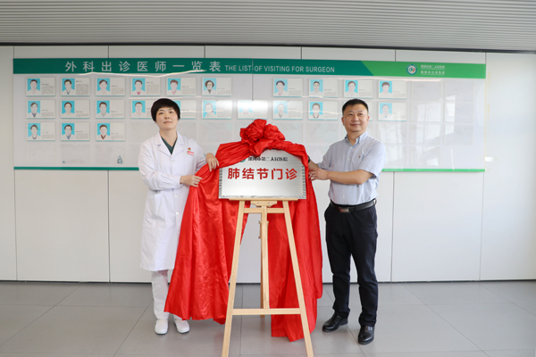 揭牌儀式上,黨委書記魏松、院長王瑾共同為“肺結(jié)節(jié)門診”揭牌。
