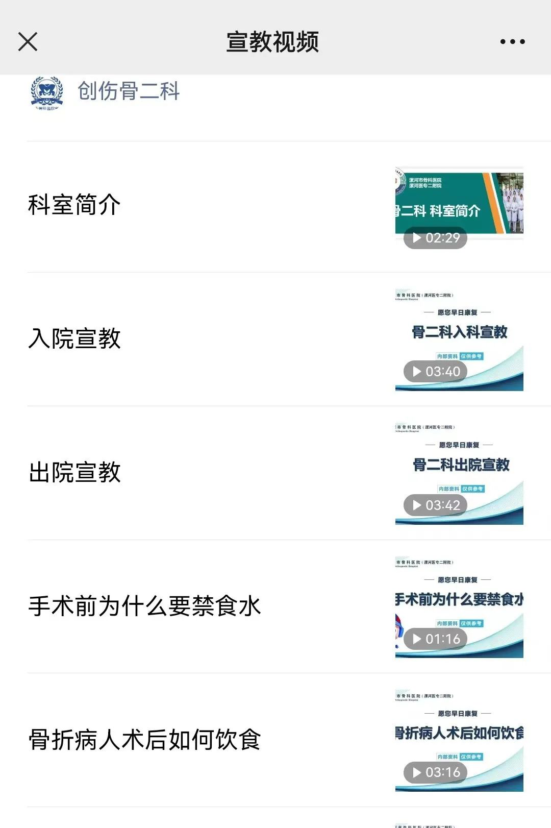 為深入貫徹落實(shí)“改善就醫(yī)感受 提升患者體驗(yàn)”六聚焦六提升實(shí)施方案,提高患者從入院到出院全流程健康知識(shí)宣教效果,充分發(fā)揮新媒體短視頻在健康科普知識(shí)傳播中的獨(dú)特優(yōu)勢(shì),漯河市骨科醫(yī)院骨二科(創(chuàng)傷骨科、骨腫瘤)率先在科室開(kāi)展住院患者全流程視頻宣教服務(wù)。通過(guò)微信公眾號(hào)、電視、平板電腦、健康宣教二維碼等多種方式全方面進(jìn)行宣教視頻的傳播,提升患者就醫(yī)體驗(yàn),實(shí)現(xiàn)群眾便捷就醫(yī)、安全就醫(yī)、明白就醫(yī)。