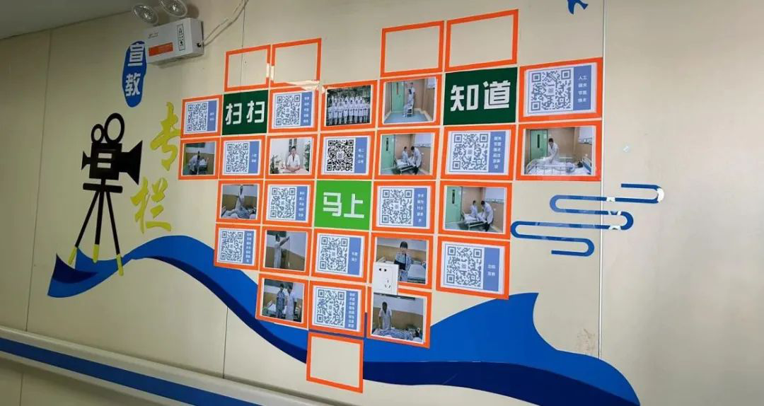 走進(jìn)骨二科(創(chuàng)傷骨科、骨腫瘤),映入眼簾的就是獨(dú)具特色的健康宣教二維碼墻,這是科室優(yōu)質(zhì)護(hù)理服務(wù)工作的一道靚麗的風(fēng)景線,也是提升患者就醫(yī)體驗(yàn)的重要舉措。從入院宣教到圍術(shù)期健康指導(dǎo)、術(shù)后康復(fù)鍛煉再到出院宣教……每一個(gè)場(chǎng)景設(shè)計(jì)、每一個(gè)動(dòng)作要領(lǐng)都是骨二科(創(chuàng)傷骨科、骨腫瘤)醫(yī)護(hù)人員結(jié)合工作實(shí)際,本色出演,通過(guò)自學(xué)制作科普視頻,并上傳至網(wǎng)絡(luò)生成二維碼來(lái)供患者觀看。為方便患者操作,科室特意設(shè)計(jì)并制作宣傳文化墻,將二維碼放置在文化墻上,患者只要掃一掃即可找到自己需要獲取的健康知識(shí)。體現(xiàn)了健康教育實(shí)時(shí)性、專(zhuān)科性、個(gè)性化的特點(diǎn),患者不僅從中學(xué)習(xí)健康知識(shí),更提高遵醫(yī)行為的意識(shí),提升了治療的依從性和滿(mǎn)意度。