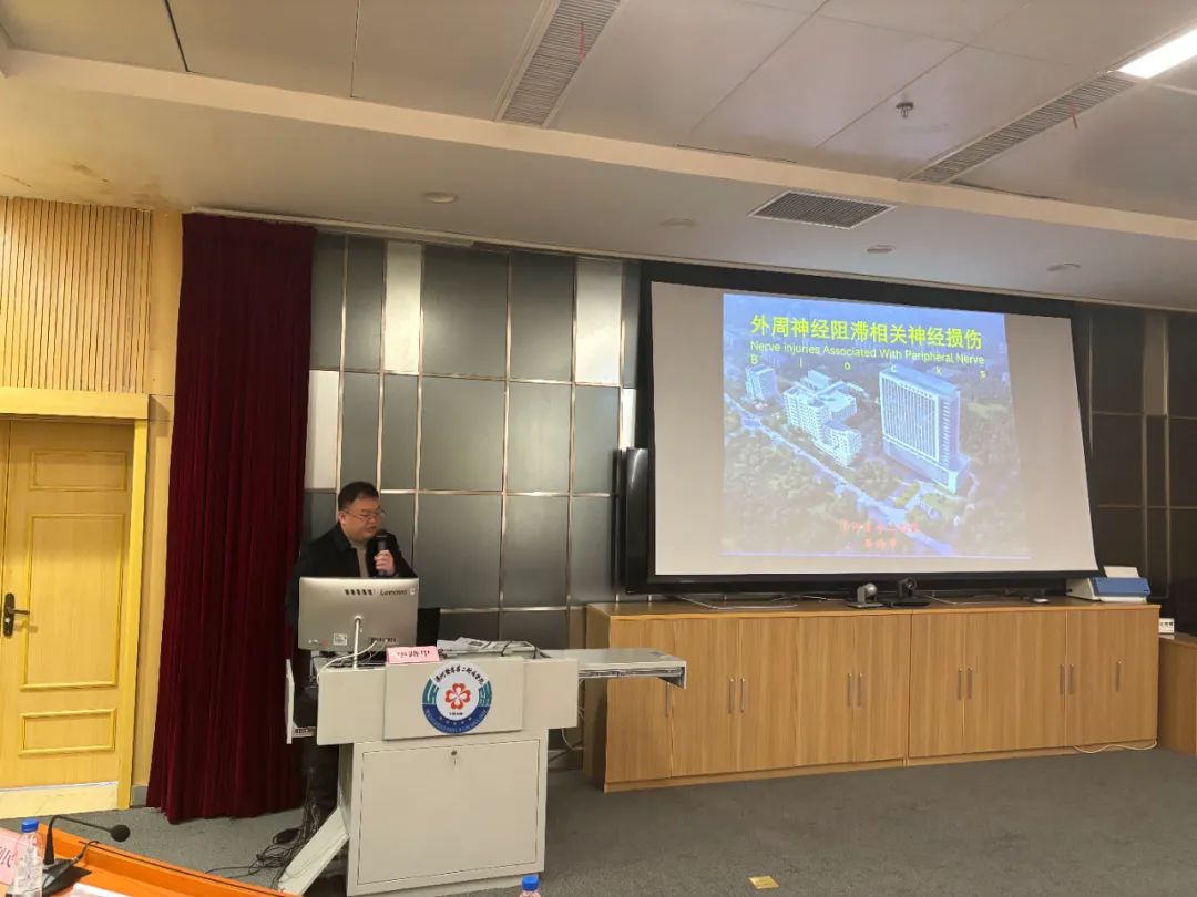 漯河市骨科醫(yī)院麻醉科副主任畢路甲講授《外周神經(jīng)阻滯相關(guān)損傷》,列舉了可能導(dǎo)致神經(jīng)損傷的原因及處理治療原則,使大家在今后的工作中注意防范。