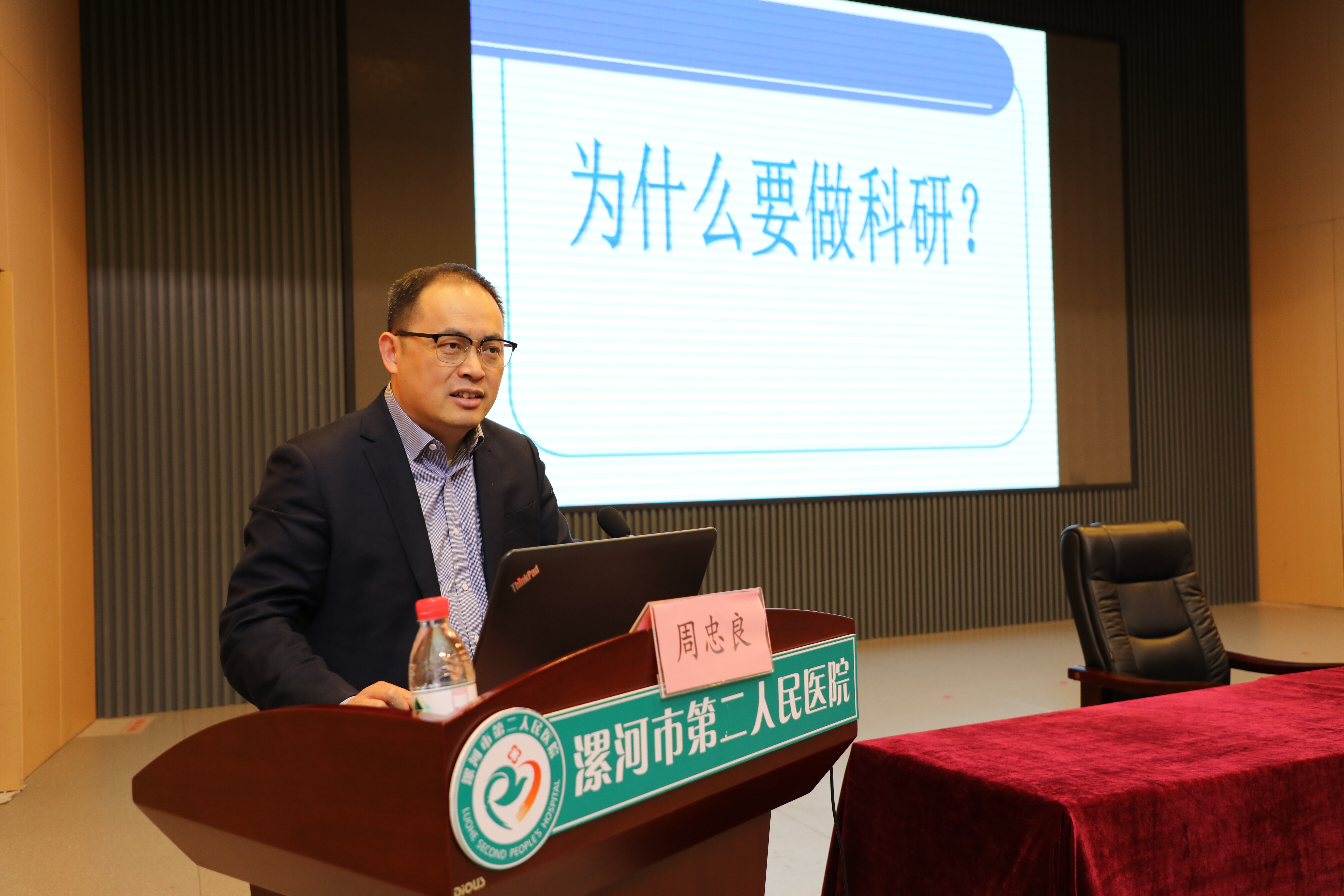 黨委書記魏松對周忠良教授的到來表示熱烈的歡迎。他強調(diào),醫(yī)學(xué)科研是現(xiàn)代醫(yī)院發(fā)展的重要支撐,也是提高醫(yī)療水平和質(zhì)量的關(guān)鍵所在。希望廣大職工能以此次科研提升講座為契機,抓住機會努力向周教授學(xué)習(xí),發(fā)散提升科研思維,積極探索解決科研問題的途徑和方法,進一步提高科研工作的質(zhì)量和水平。
