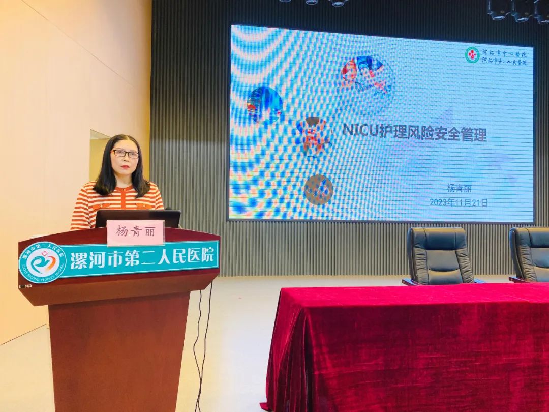 漯河市中心醫(yī)院 NICU(PICU)護(hù)士長(zhǎng)楊青麗為大家講授《NICU護(hù)理風(fēng)險(xiǎn)安全管理》,以分享個(gè)案的形式,講解了NICU護(hù)理安全風(fēng)險(xiǎn)的管理方法及應(yīng)對(duì)措施。