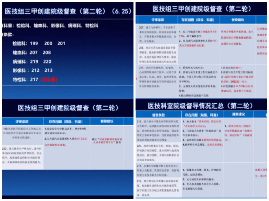 針對第一輪督查發(fā)現(xiàn)的問題,每個(gè)科室針對問題,積極完善。病理科在工作人員少、病理實(shí)驗(yàn)室(院內(nèi)、學(xué)校實(shí)驗(yàn)室)需要重新改造的情況下,科室人員在負(fù)責(zé)人趙路的帶領(lǐng)下,加班加點(diǎn)制作、完善三甲創(chuàng)建相關(guān)資料。 影像科在三位主任的帶領(lǐng)下,發(fā)揮全科、全員優(yōu)勢,每一項(xiàng)任務(wù)布置下去,責(zé)任到人,在規(guī)定時(shí)間內(nèi)按時(shí)完成。輸血科針對評審條款要求,結(jié)合輸血自身特點(diǎn),完善、優(yōu)化輸血管理體系文件,特別是制作的輸血科儀器臺賬,定點(diǎn)、定時(shí)、定人,更好實(shí)現(xiàn)了實(shí)驗(yàn)室儀器設(shè)備的管理、跟蹤,已作為儀器臺賬管理模版,在全院推廣使用。檢驗(yàn)科針對評審條款、依據(jù)iso15189實(shí)驗(yàn)室建設(shè)要求,與科室質(zhì)量與安全管理組成員 簽訂責(zé)任承諾書,形成“人人關(guān)注質(zhì)量安全,人人參與質(zhì)量安全”的良好氛圍。