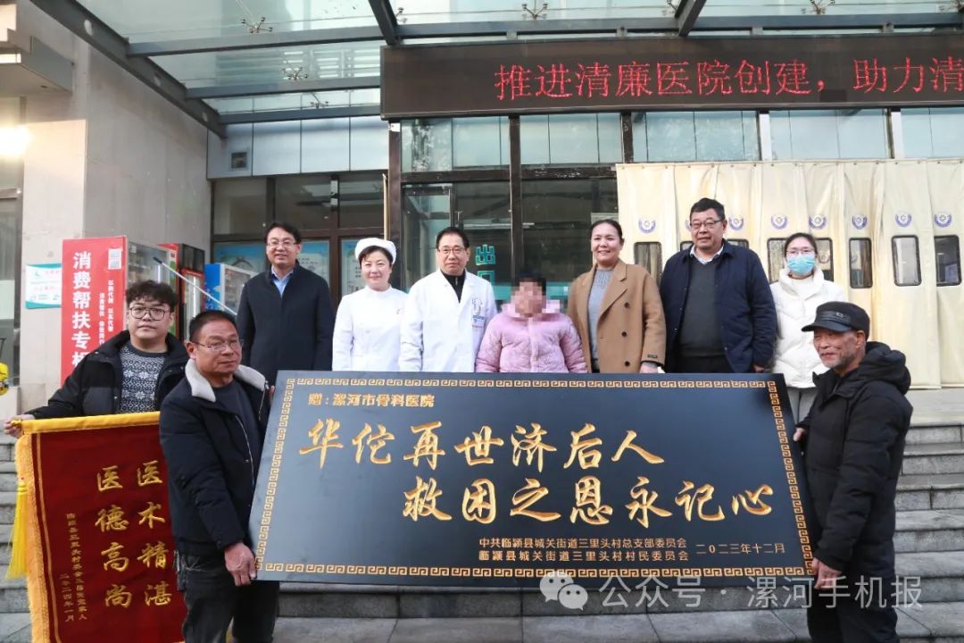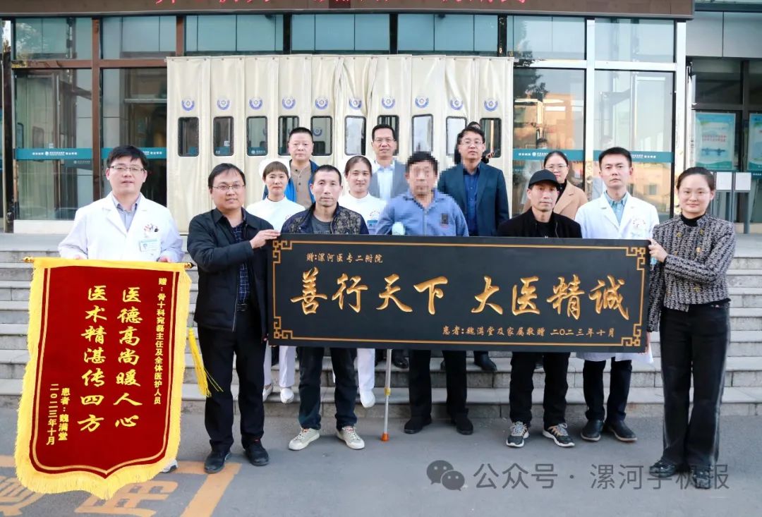 “華佗再世濟(jì)后人 救困之恩永記心”、“善行天下 大醫(yī)精誠(chéng)”、“醫(yī)德高尚暖人心 醫(yī)術(shù)精湛傳四方”……連日來(lái),臨潁縣、舞陽(yáng)縣、召陵區(qū)的多位患者將一面面匾額、錦旗送到漯河市骨科醫(yī)院(漯河醫(yī)專(zhuān)二附院)的醫(yī)務(wù)人員手中,感謝醫(yī)院對(duì)他們開(kāi)展的醫(yī)療救助和悉心治療。