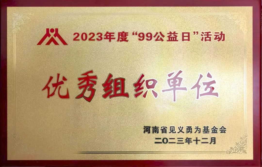 近日,市二院被河南省見(jiàn)義勇為基金會(huì)授予全省2023年“99公益日”活動(dòng)先進(jìn)單位榮譽(yù)稱(chēng)號(hào)。
