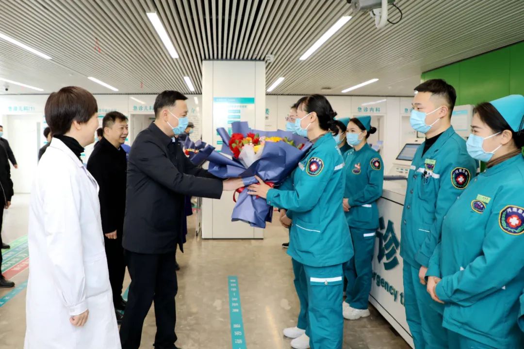 朱黎明一行先后到急診科、病人服務(wù)中心、影像科、皮膚科、中醫(yī)科、小兒心血管神經(jīng)血液科,小兒呼吸內(nèi)科看望慰問醫(yī)護(hù)人員,他表示,廣大醫(yī)護(hù)人員始終奮戰(zhàn)在醫(yī)療救治的最前線,承擔(dān)著光榮而艱巨的職責(zé)使命,為護(hù)佑全市人民健康提供了堅(jiān)實(shí)保障,在新春佳節(jié)到來之際,謹(jǐn)代表市衛(wèi)健委向辛勤奉獻(xiàn)的市二院全體醫(yī)護(hù)人員表達(dá)誠(chéng)摯的感謝和新年的祝福。