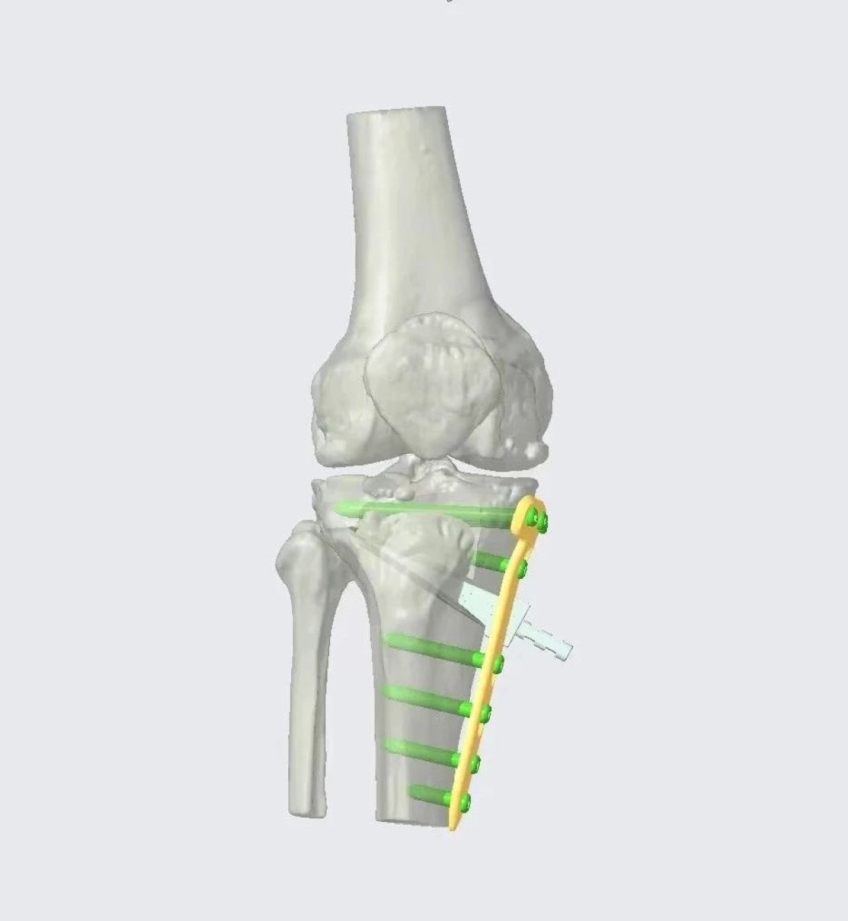 鋼板位置、螺釘位置及長度均可通過術(shù)前規(guī)劃計(jì)算,術(shù)中通過定位操作,基本與術(shù)前規(guī)劃一致,手術(shù)快速高效完成,外側(cè)合頁保留完整。無任何并發(fā)癥出現(xiàn)。術(shù)后見鋼板位置及力線糾正近乎完美!