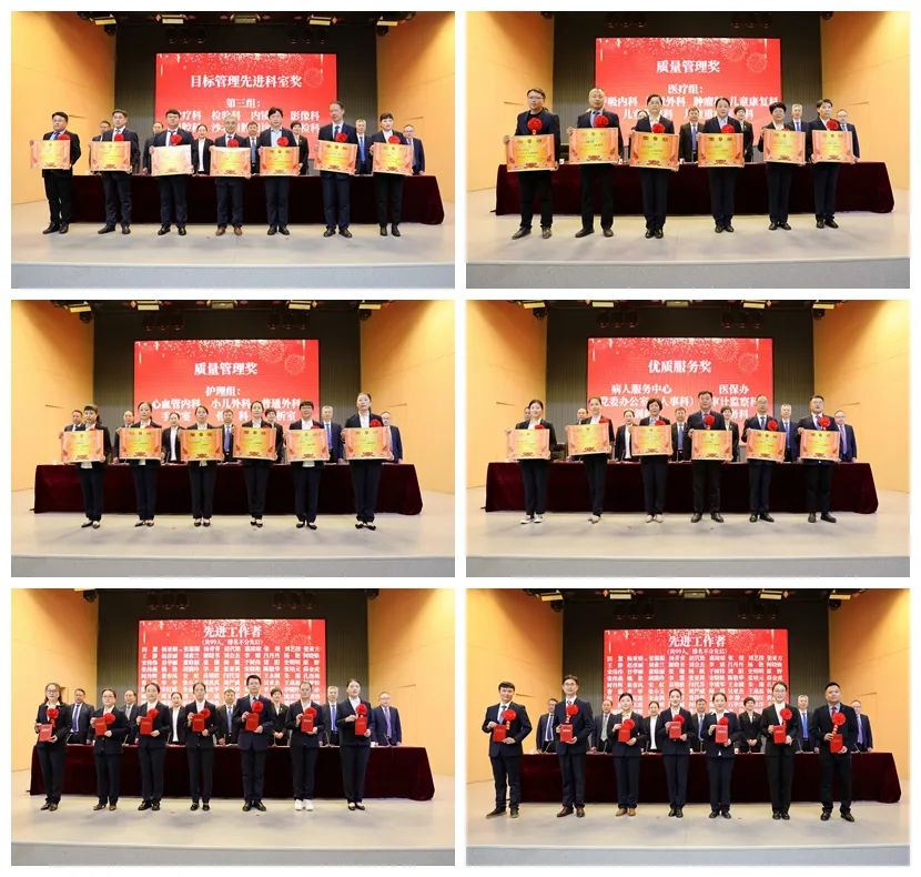 本次工作會是醫(yī)院開啟2024年高質(zhì)量發(fā)展新篇章、奮進三甲創(chuàng)建新征程關(guān)鍵節(jié)點上召開的鼓干勁、聚合力的重要會議。副院長謝彩玲、副院長郭長根、紀委書記孟德陽、副院長張曉東、工會主席李世學(xué)按照大會既定議程,依次宣讀了2023年度先進集體、先進工作者等表彰文件和表彰名單,對2023年度特殊貢獻獎、目標管理先進科室、質(zhì)量管理獎、優(yōu)質(zhì)服務(wù)獎、先進工作者進行了表彰。被表彰科室代表和先進個人代表披紅戴花,精神抖擻,從院領(lǐng)導(dǎo)手中接過象征榮譽和期望的獎牌、獎狀,熱烈的掌聲響徹學(xué)術(shù)報告廳,展現(xiàn)了二院人奮勇拼搏、干必出彩的良好精神風(fēng)貌,為新的一年工作擂響了戰(zhàn)鼓,鼓足了干勁。