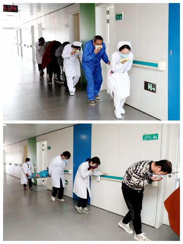 按照預(yù)案流程,醫(yī)院各救援小組緊急開(kāi)展救援,科室醫(yī)護(hù)人員立即組織引導(dǎo)患者和家屬有序進(jìn)行疏散撤離。對(duì)于不能行動(dòng)的病人,醫(yī)護(hù)人員通過(guò)擔(dān)架迅速將其轉(zhuǎn)移至安全地帶。