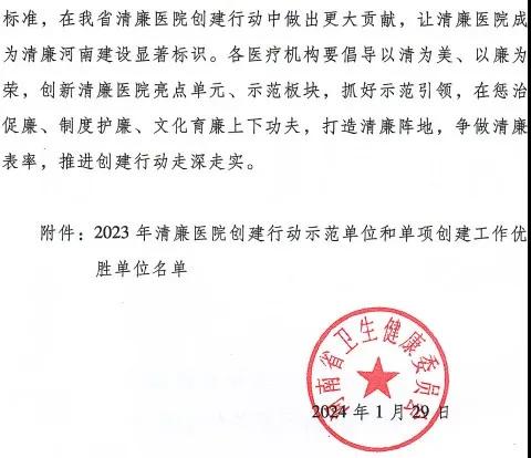 創(chuàng)建清廉醫(yī)院 守護(hù)人民健康——漯河醫(yī)專二附院被授予2023年省級(jí)清廉醫(yī)院創(chuàng)建行動(dòng)示范單位