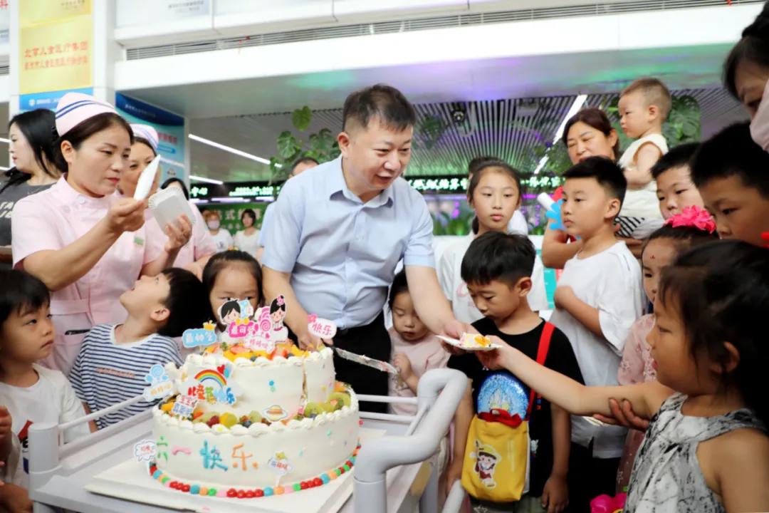 在門診大廳,黨委書記魏松、院長(zhǎng)王瑾與兒科專家、護(hù)士長(zhǎng)、孩子們一起切下節(jié)日蛋糕,并代表全院醫(yī)護(hù)人員對(duì)孩子們表示衷心的祝福,希望孩子們健康快樂成長(zhǎng)?,F(xiàn)場(chǎng),醫(yī)護(hù)人員化身白雪公主、花仙子、小黃人、網(wǎng)紅青蛙與小朋友們熱情互動(dòng),友好交流,派發(fā)精心準(zhǔn)備的節(jié)日禮物。
