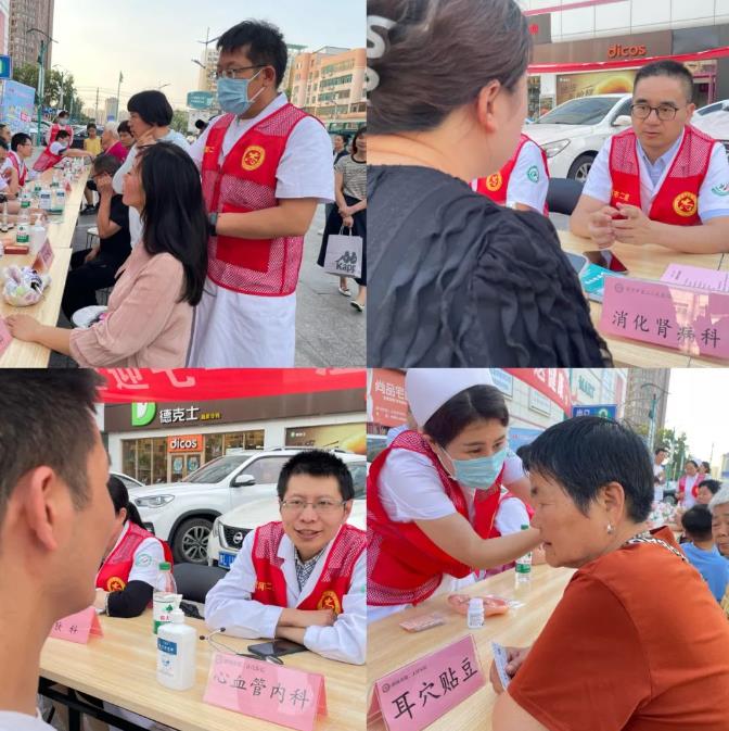 現(xiàn)場氣氛熱烈,前來咨詢和問診的社區(qū)居民及路人絡(luò)繹不絕,市二院放療科、康復(fù)科、老年醫(yī)學(xué)科、心內(nèi)科、皮膚科、眼科、消化腎病科等20余名黨員志愿者們?yōu)榫用駛兲峁┟赓M(fèi)測血壓、測血糖及健康咨詢;對他們提出的疑問進(jìn)行耐心解答,并詳細(xì)詢問其身體狀況和既往病史,科普相關(guān)知識,積極引導(dǎo)大家科學(xué)就醫(yī)、合理用藥,宣傳倡導(dǎo)健康生活方式,增強(qiáng)自我保健意識。