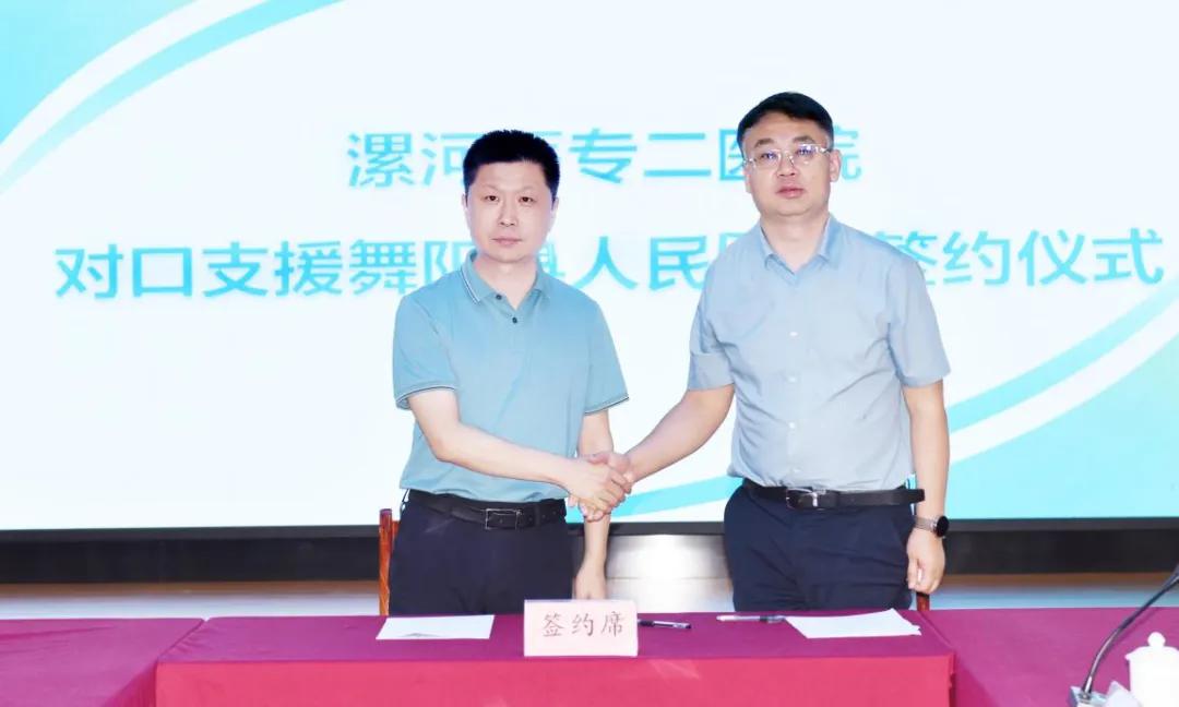 6月25日,漯河市骨科醫(yī)院對(duì)口支援舞陽(yáng)縣人民醫(yī)院協(xié)議書簽訂儀式在舞陽(yáng)縣人民醫(yī)院會(huì)議室舉行。漯河市骨科醫(yī)院黨委書記柴運(yùn)洪、漯河市骨科醫(yī)院副院長(zhǎng)鄭建新、舞陽(yáng)縣衛(wèi)健委副主任朱迎民、舞陽(yáng)縣衛(wèi)健委醫(yī)政股股長(zhǎng)遠(yuǎn)彩月,舞陽(yáng)縣人民醫(yī)院黨委書記、院長(zhǎng)趙樂(lè),全體對(duì)口支援醫(yī)師及受援科室主任出席儀式。