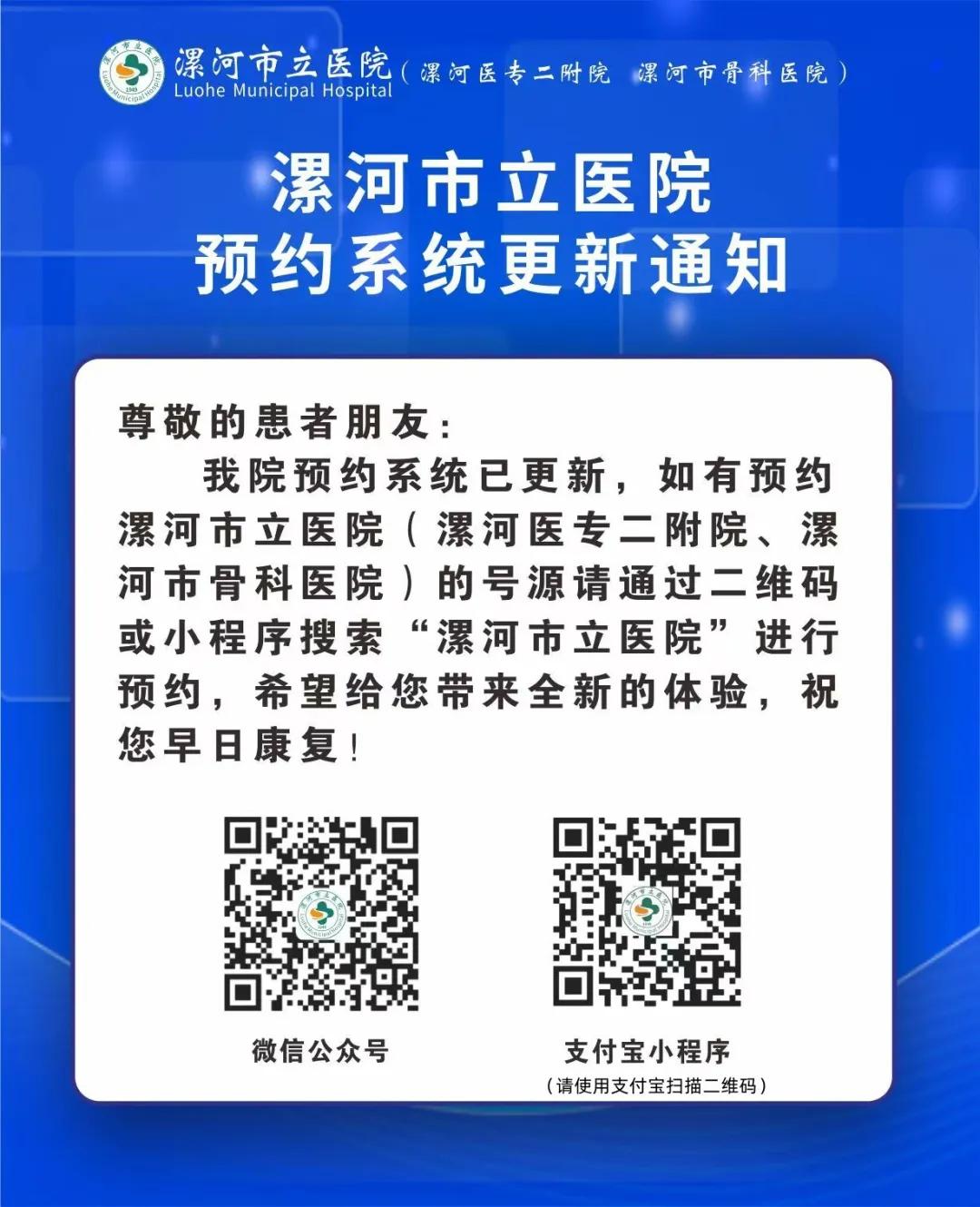 漯河市立醫(yī)院預約系統更新通知