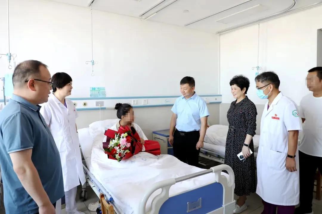 當(dāng)天上午,市二院黨委書記魏松、院長王瑾、副院長張曉東、副院長劉橋及相關(guān)人員到心血管內(nèi)科看望患兒及家屬。院領(lǐng)導(dǎo)詳細(xì)了解涵涵的恢復(fù)狀況,并對她能夠順利康復(fù)、即將重返正常生活與學(xué)習(xí)由衷的祝賀與美好的祝愿。