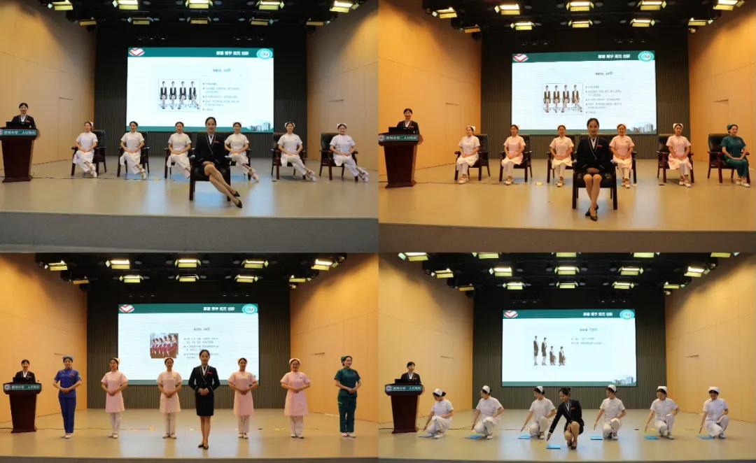 禮儀實(shí)踐環(huán)節(jié)由病人服務(wù)中心副主任張靜組織醫(yī)院導(dǎo)診團(tuán)隊(duì)現(xiàn)場演示并指導(dǎo)站姿、坐姿、走姿、蹲姿、工作姿態(tài)和接待禮儀等服務(wù)禮儀規(guī)范。