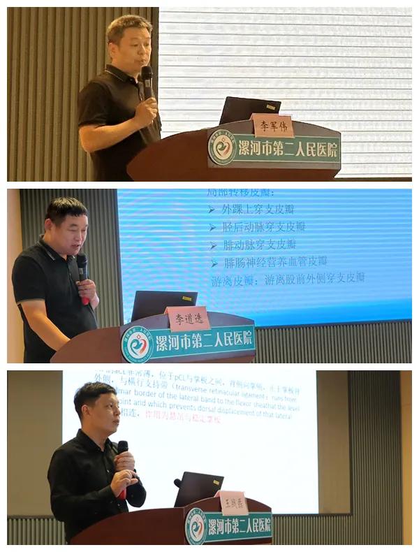 在學術(shù)交流環(huán)節(jié),河南省人民醫(yī)院手足顯微和創(chuàng)面修復(fù)外科主任謝振軍教授就“慢性創(chuàng)面的皮瓣修復(fù)”,市骨科醫(yī)院骨四科主任李俊明就“穿支皮瓣聯(lián)合Masquelet技術(shù)治療四肢骨及皮膚軟組織缺損”,市二院顯微外科主任沈衛(wèi)軍就“幾種常見的肌腱自發(fā)性離斷”,市中心醫(yī)院創(chuàng)傷骨科主任李軍偉就“超顯微技術(shù)在阿爾茨海默病中的應(yīng)用進展”,市骨科醫(yī)院骨四科副主任醫(yī)師李道選就“游離股前外側(cè)穿支皮瓣修復(fù)足踝部皮膚缺損”,市二院顯微外科副主任醫(yī)師王戰(zhàn)磊就“手部側(cè)副韌帶損傷的診療方法”做了專題講座及分享交流。