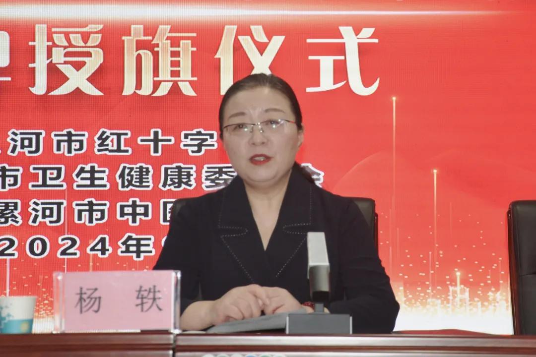 為積極響應社會公益號召,弘揚紅十字精神,促進醫(yī)療衛(wèi)生與志愿服務深度融合,2024年9月25日上午,市紅十字會、市衛(wèi)健委聯(lián)合市中醫(yī)院在醫(yī)院門診四樓學術報告廳隆重舉辦“喜迎國慶 志愿同行——漯河市中醫(yī)院紅十字志愿服務隊揭牌授旗儀式”。市紅十字會黨組書記、常務副會長孫潁華,市衛(wèi)健委黨組副書記、副主任王向良,市中醫(yī)院黨委書記楊軼,市中醫(yī)院黨委副書記、副院長楚勝,市紅十字會黨組成員、副會長李世杰出席揭牌授旗儀式。各縣區(qū)、功能區(qū)紅十字會負責同志、市直醫(yī)療衛(wèi)生機構和漯河醫(yī)專各附屬醫(yī)院分管領導以及市中醫(yī)院志愿者職工代表近200人參加。會議由楚勝主持。