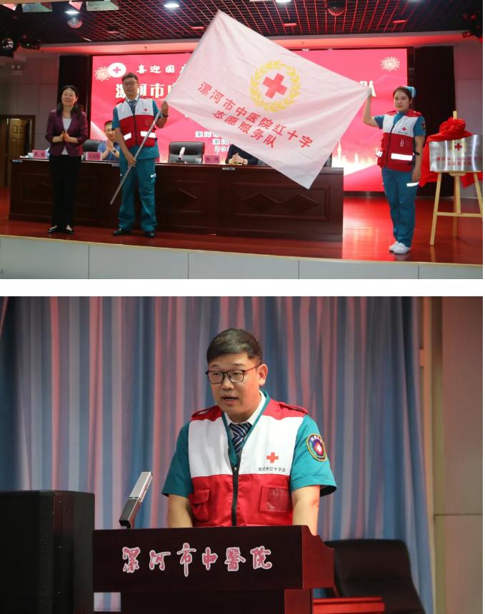 李世杰宣讀《漯河市紅十字會關于同意成立漯河市中醫(yī)院紅十字志愿服務隊的批復》文件。孫潁華、王向良為漯河市中醫(yī)院紅十字志愿服務隊揭牌。孫潁華向漯河市中醫(yī)院紅十字志愿服務隊授旗。漯河市中醫(yī)院紅十字志愿服務隊代表李強進行表態(tài)發(fā)言并作出承諾,將充分發(fā)揮紅十字志愿者的優(yōu)勢,為更多需要幫助的人提供醫(yī)療援助和志愿服務。