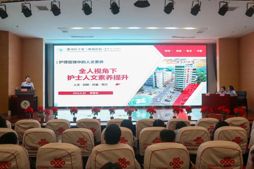 五官科護(hù)士長(zhǎng)尹姿文講授《全人視角下--護(hù)士人文素養(yǎng)提升》,通過(guò)工作中的感人事例,強(qiáng)調(diào)全人護(hù)理理念,探討護(hù)士如何提升人文素養(yǎng),包括倫理道德、溝通技巧、同理心培養(yǎng)等,旨在培養(yǎng)護(hù)士成為患者身心健康的全面關(guān)懷者。