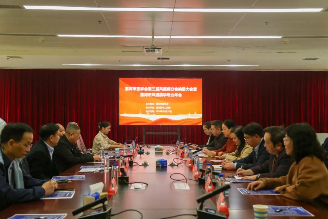 為搭建風濕病學(xué)術(shù)交流平臺,提升風濕病診治水平,更好地保障人民群眾健康,10月26日,由漯河市醫(yī)學(xué)會主辦、漯河市骨科醫(yī)院(漯河醫(yī)專二附院、漯河市立醫(yī)院)承辦的漯河市第三屆風濕病學(xué)專業(yè)委員會換屆暨2024年漯河市風濕病學(xué)專業(yè)年會召開。漯河市衛(wèi)健委三級調(diào)研員王新慧、市醫(yī)學(xué)會花云秘書長、漯河市骨科醫(yī)院黨委書記柴運洪、紀委書記劉國鋒等出席。會上,我院劉國鋒當選為主任委員,李變鋒當選為副主任委員,程苗當選為常務(wù)委員兼學(xué)會秘書。會上頒發(fā)了委員證,全體委員合影留念。