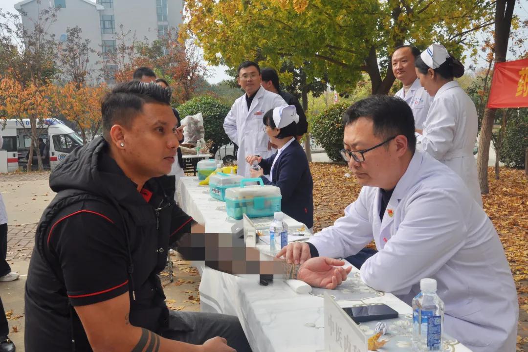 中醫(yī)義診區(qū)域,副主任中醫(yī)師彭壯、主治中醫(yī)師李佳攜手坐診,學(xué)生們排起了長長的隊伍前來體驗中醫(yī)號脈等特色診療服務(wù)。在漯河醫(yī)專學(xué)習(xí)的數(shù)名外國留學(xué)生深深熱愛著中華傳統(tǒng)文化,對中醫(yī)藥知識有著濃厚的興趣,在對外交流處王瑾老師的陪同下,紛紛參與體驗。市中醫(yī)院彭壯醫(yī)生為斯里蘭卡籍留學(xué)生仝深平中醫(yī)把脈問診,針對其脈象,給予合理的飲食建議和健康生活指導(dǎo),受到外國留學(xué)生們的點贊!