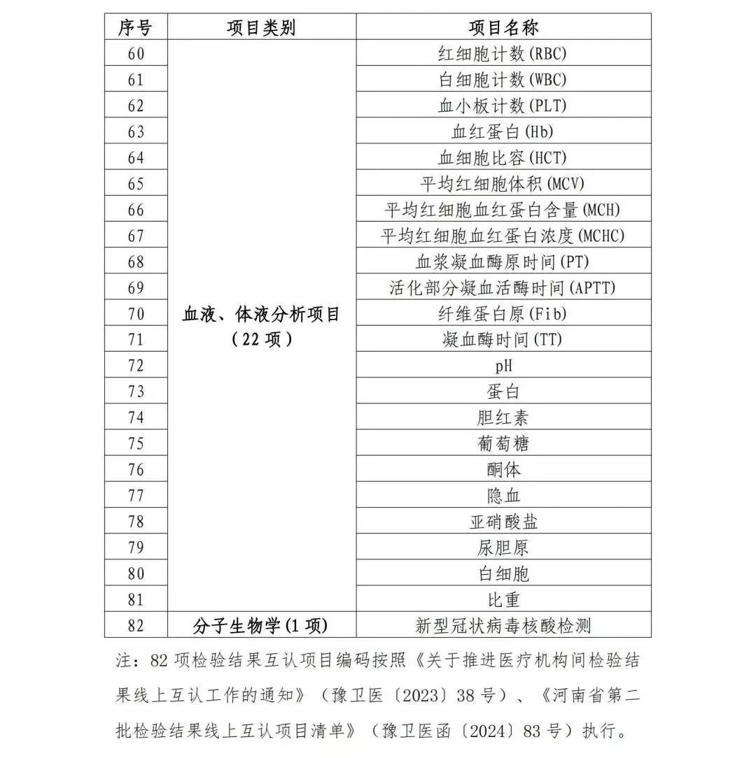 3.全省各醫(yī)聯(lián)體成員單位間和有對(duì)口支援關(guān)系的醫(yī)療機(jī)構(gòu)間,屬互認(rèn)項(xiàng)目的檢查檢驗(yàn)結(jié)果,應(yīng)互相認(rèn)可。
