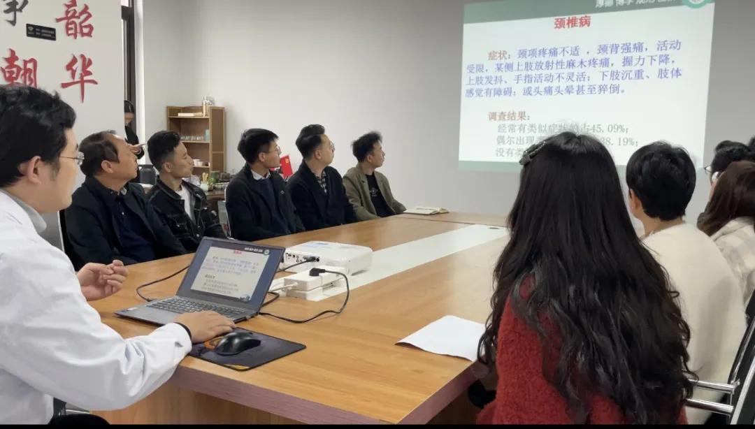 在同步進(jìn)行的健康科普進(jìn)企業(yè)現(xiàn)場,市二院中醫(yī)針灸科副主任趙劍鋒針對電商從業(yè)者長期久坐的職業(yè)特點(diǎn),重點(diǎn)講解了頸椎病、腰椎病等疾病的預(yù)防和應(yīng)對方法,并從日常飲食、科學(xué)的鍛煉方法、緩解疲勞的小妙招、心理壓力的釋放途徑與參會(huì)人員進(jìn)行了分享。參會(huì)職工們跟隨講解邊聽邊學(xué),現(xiàn)場氣氛熱烈,活動(dòng)效果超出預(yù)期。