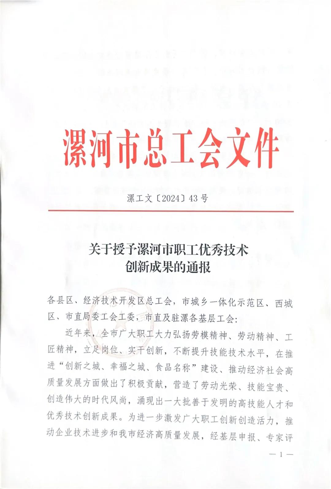 河市中醫(yī)院3個項目獲得漯河市職工優(yōu)秀技術創(chuàng)新成果獎項