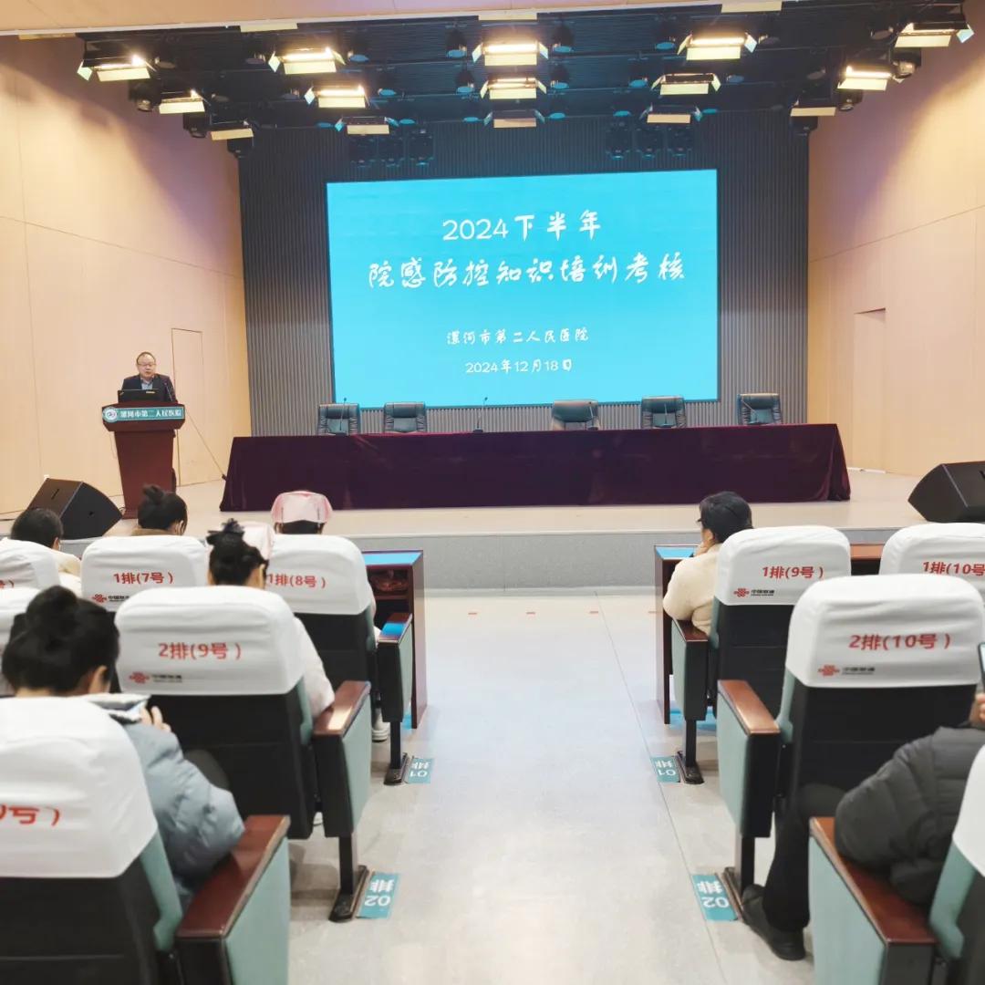 為進一步強化全院醫(yī)務(wù)人員感染防控意識,提高防控水平,12月18日下午,市二院在12樓學術(shù)報告廳開展2024下半年院感防控知識培訓、考核,全院醫(yī)療、醫(yī)技、藥劑及護理共計500余人參加了會議。