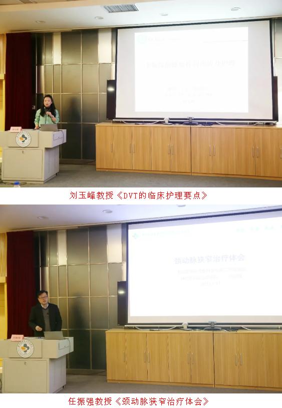 學術會上,宋燕教授、苗仁英教授、楊博教授、付一群教授、牛曉陽教授、劉衛(wèi)萍教授、劉玉峰教授、漯河醫(yī)專二附院神經(jīng)外科副主任振強教授、漯河醫(yī)專二附院急診外科副主任張曉光教授、漯河醫(yī)專二附院急診外科程書強教授等分別圍繞《頸動脈狹窄的指南解讀》《淺談頸動脈狹窄的外科治療一術式選擇的進階之路》《下肢動脈硬化閉塞癥腔內(nèi)治療策略及病例分享》《靜脈曲張的微創(chuàng)化診療》《VTE防控體系構(gòu)建及病例分享》《DVT的臨床護理要點》《頸動脈狹窄治療體會》《頸深淋巴-靜脈吻合術治療阿爾茨海默病》《下肢深靜脈血栓的診治》等為題,為現(xiàn)場血管外科同仁進行了精彩的學術報告。學術會上,與會觀眾積極圍繞相關課題向授課專家提問,并進行探討交流,現(xiàn)場始終充滿濃厚的學術氛圍。