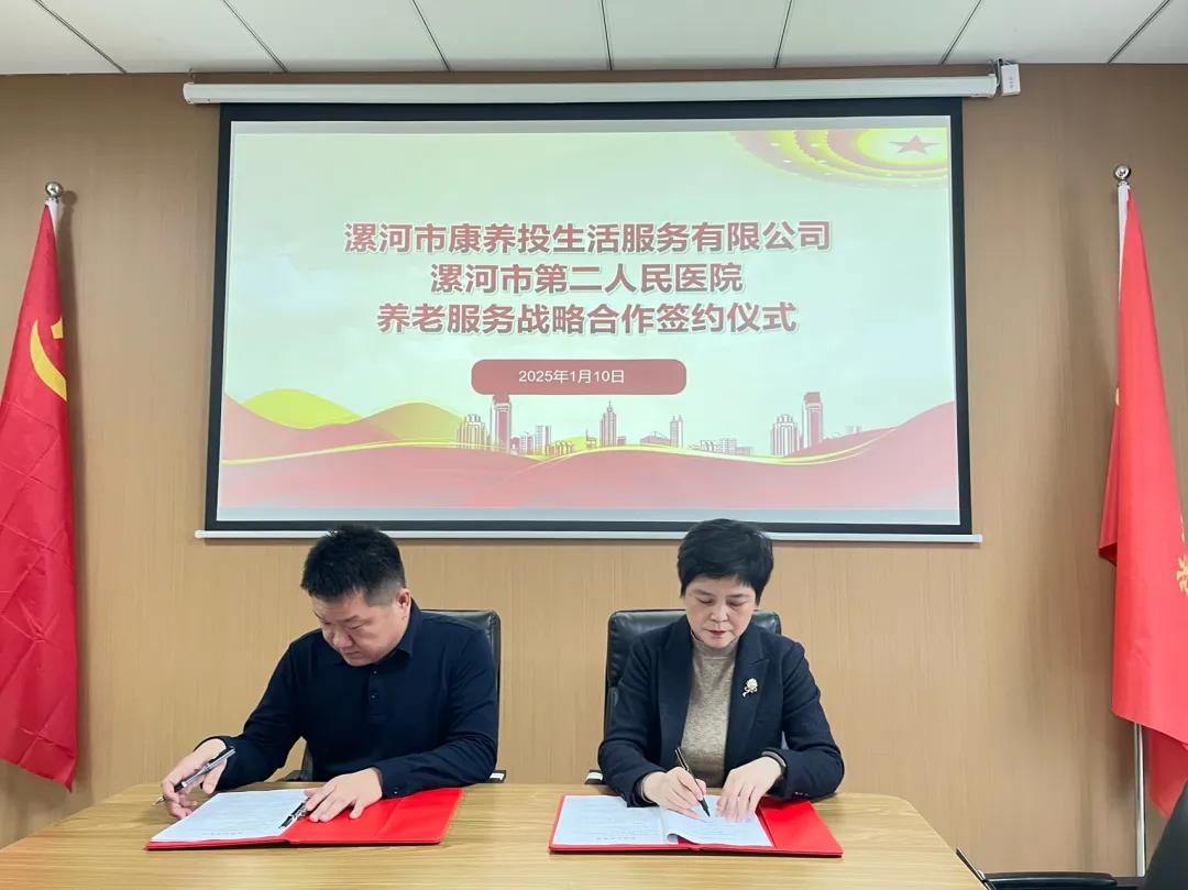 為探索醫(yī)養(yǎng)結(jié)合工作新模式,助力我市構(gòu)建醫(yī)養(yǎng)結(jié)合的養(yǎng)老服務(wù)體系新路徑,1月10日下午,市二院作為全市首家簽約單位與漯河市康養(yǎng)投公司簽訂醫(yī)養(yǎng)戰(zhàn)略合作協(xié)議,為漯河地區(qū)智慧養(yǎng)老的發(fā)展注入了新活力。市民政局養(yǎng)老科科長(zhǎng)趙煒,市康養(yǎng)投生活公司董事長(zhǎng)靳元浩,市二院副院長(zhǎng)劉橋、醫(yī)聯(lián)體辦公室副主任張靜出席簽約儀式。