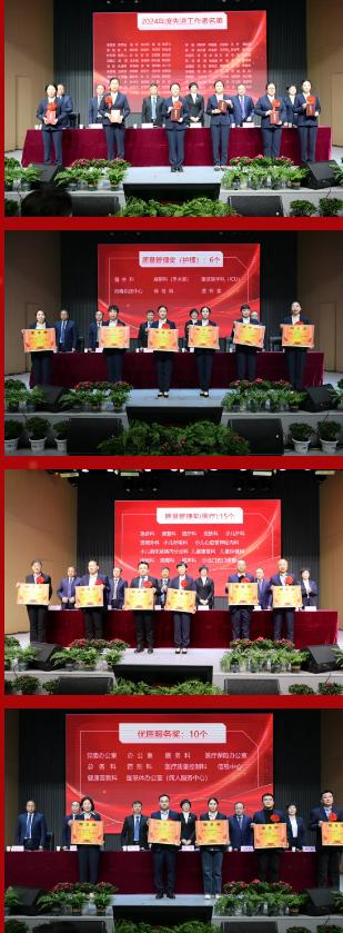 大會對2024年表現(xiàn)優(yōu)秀的集體和個人進行了隆重表彰,依次頒發(fā)了“年度工作先進工作者”“護理質量管理獎”“醫(yī)療質量管理獎”“優(yōu)質服務獎”“目標管理先進科室”和“特殊貢獻獎”。獲獎代表們臉上洋溢著自豪的笑容依次上臺領獎,臺下的陣陣掌聲,更是獻給榜樣的最高禮贊。