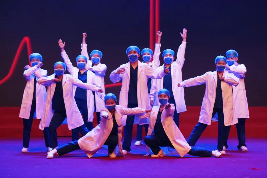 整場(chǎng)演出內(nèi)容豐富多彩、形式多樣,匯集了大合唱、小品、樂器串燒、國風(fēng)舞蹈秀、現(xiàn)代舞、歌伴舞等十余個(gè)精彩節(jié)目。其中,音樂快板《夸夸我們的好醫(yī)院》表達(dá)對(duì)醫(yī)院七十五周歲生日的祝福以及圓夢(mèng)三甲的喜悅;詩朗誦《繼往開來,續(xù)譜華章》講述了75年間一代代二附院人,用青春和汗水譜寫不朽華章;情景劇《為你點(diǎn)贊》通過充滿歡笑與溫情的故事,了解這群在平凡的崗位中默默奉獻(xiàn)的白衣天使。所有節(jié)目均由醫(yī)院職工們利用休息時(shí)間構(gòu)思、創(chuàng)作、排演而成,一首首耳熟能詳?shù)慕?jīng)典歌曲時(shí)而慷慨激昂、熱情奔放,時(shí)而激情澎湃、蕩氣回腸,展示了二附院人朝氣蓬勃、拼搏進(jìn)取、奮發(fā)圖強(qiáng)的精神風(fēng)貌,贏得了現(xiàn)場(chǎng)觀眾的陣陣掌聲。最后,聯(lián)歡會(huì)在醫(yī)院合唱團(tuán)帶來的大合唱《沙澧醫(yī)港》中落下帷幕。