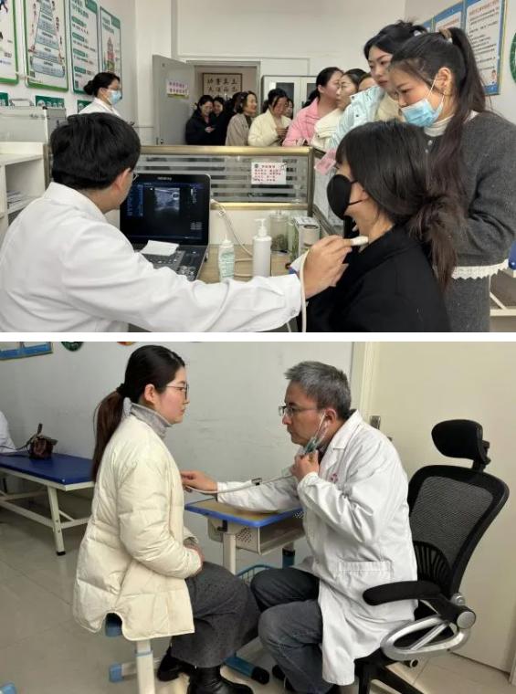 義診活動現(xiàn)場,醫(yī)療志愿者們?yōu)榕搪毠っ赓M提供血壓測量、甲狀腺彩超、體格檢查、用藥指導(dǎo)、健康咨詢、疾病診斷等服務(wù),發(fā)放健康知識手冊。同時針對女教職工健康狀況和需求,提供個體化的健康建議和詳細(xì)的治療方案。此次共義診100余人,發(fā)放健康宣傳資料300 余份。