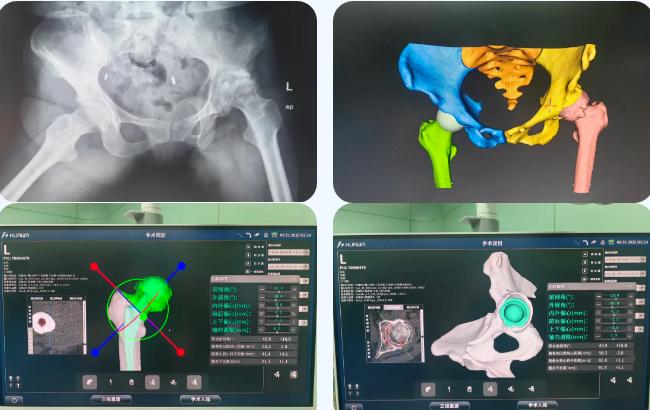 見到患者后,智能微創(chuàng)骨科宛磊主任團隊隨即對其完善了相關檢查,經(jīng)診斷其左側(cè)股骨頭無菌性壞死,屬化膿性髖關節(jié)炎的遠期性并發(fā)癥。為盡快幫助患者緩解病痛,團隊為其開通了綠色通道,并進行多學科會診,排除手術禁忌后,入院第二天在全身麻醉下行“機器人輔助下左側(cè)人工全髖關節(jié)置換術”。手術期間,手術機器人發(fā)揮了大功效,在精準度高、創(chuàng)口小、出血少的情況下完成手術。