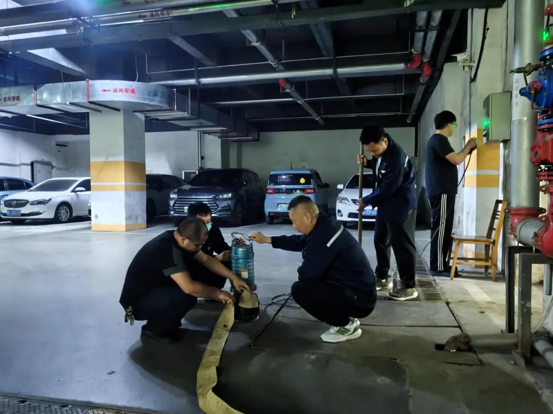 演練模擬漯河市區(qū)出現(xiàn)持續(xù)強降雨天氣,由于短時間降雨量過大,造成雨水倒灌,致使地下車庫、配電間等重點地下空間區(qū)域進水。現(xiàn)場值班發(fā)現(xiàn)險情,報告防汛總指揮,總指揮迅速啟動防汛搶險應(yīng)急預案,組織防汛應(yīng)急救援隊進行搶險救援,保衛(wèi)人員負責疏散撤離,同心協(xié)力處置險情。