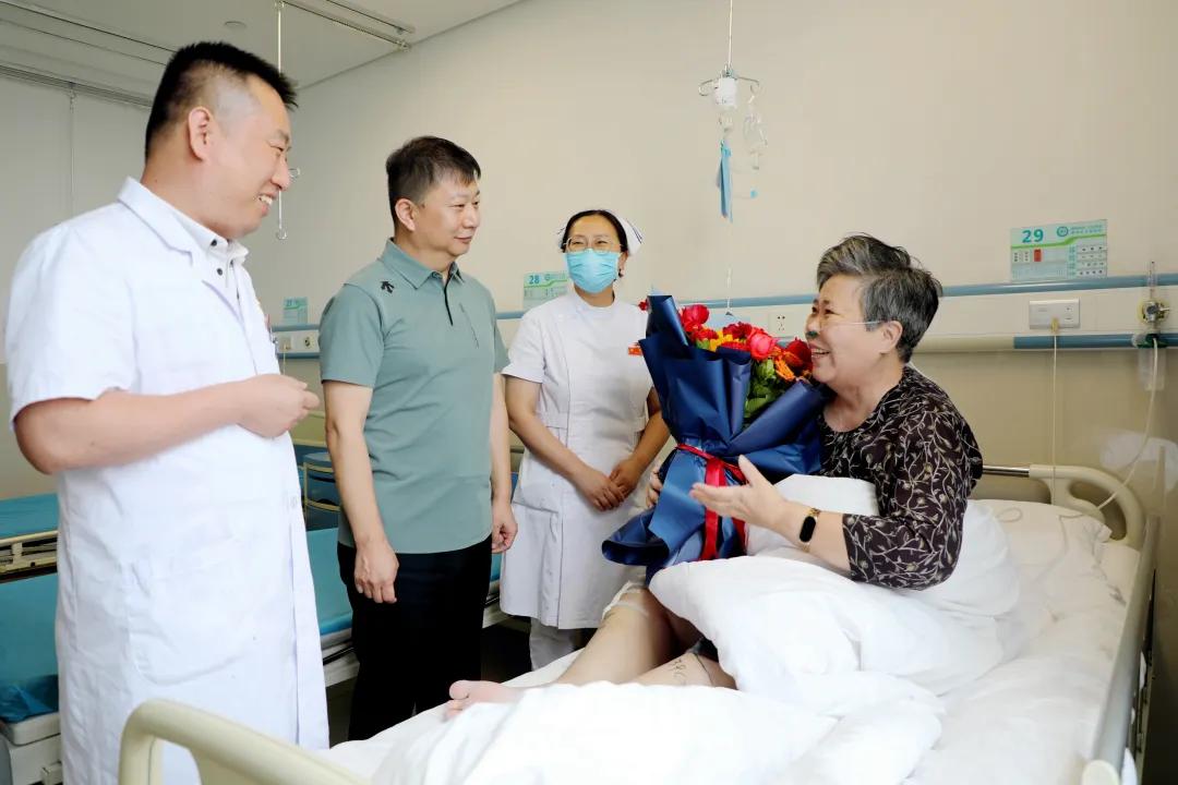 5月30日上午,市二院黨委書記魏松、副院長劉橋專程來到病房,看望慰問這位康復中的香港同胞,送上代表健康祝愿的鮮花,關切詢問其身體恢復情況,并送上端午安康的祝福。“沒想到在異鄉(xiāng)生病,還能在節(jié)日收到這么溫暖的關懷,真的太感謝大家了!是二院優(yōu)秀的醫(yī)護團隊救了我的命,我們全家都感激不盡!感謝二院!感謝漯河!”翁阿姨激動地表示,醫(yī)院高效的救治與貼心的服務,讓他感受到了重生的喜悅和家一般的溫暖。
