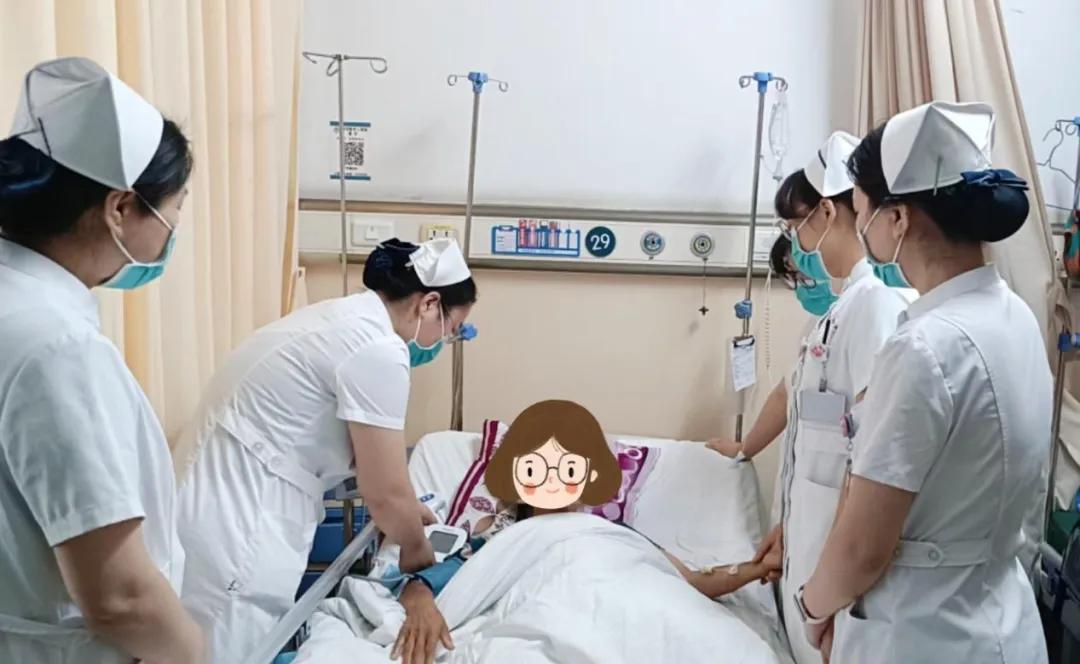 術后,患者身上留置了術區(qū)引流管、深靜脈導管、胃管、導尿管等多根管路,加上智力低下無法理解、術后疼痛等拔管風險極高。護士長陳笑寒帶領護理團隊立即組織疑難病例討論,制定出個性化、??苹淖o理方案,如管道的妥善固定,定時翻身、拍背,加強巡視等,在康復初期,責任護士始終陪伴她左右,在做好管道護理的同時,還結合病情循序漸進的引導她下床活動;患者術后常常突然哭泣、抗拒治療,面對患者術后的情緒激動,護理團隊立即剖析原因,及時緩解術后引起的疼痛,并化身"臨時家人",握著她的手輕聲安撫,用耐心和溫柔逐漸撫平她的焦慮。