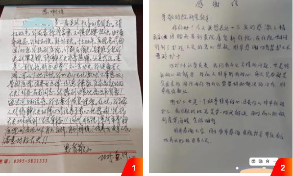 另一封感謝信來自因腰疼住院的患者,信中感謝了護士長田智慧和護士曹玲。治療期間,兩位護理人員將專業(yè)、細致的服務(wù)貫穿始終。從日??祻?fù)護理操作到患者心理疏導(dǎo),她們始終保持高度的責(zé)任心,耐心解答疑問、貼心安撫情緒,用暖心服務(wù)助力患者身心康復(fù),贏得患者由衷的信賴與感激。