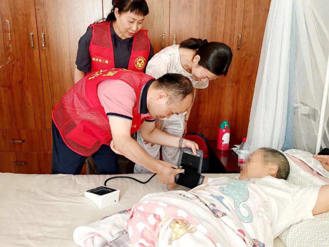 許阿姨患有心臟病、高血壓及腰椎疾病多年,天氣炎熱她的血壓一直不穩(wěn)定,家屬通過微信群向科室副主任楊光咨詢。7月16日,楊光在了解此情況后,與李慧新主任商量,決定帶醫(yī)療團隊一起前往許阿姨家中,為她進行血壓測量、心臟聽診等檢查,對其日常生活中的注意事項進行了詳細的指導。同時,還對許阿姨的用藥方案和康復計劃進行了相應的調(diào)整。