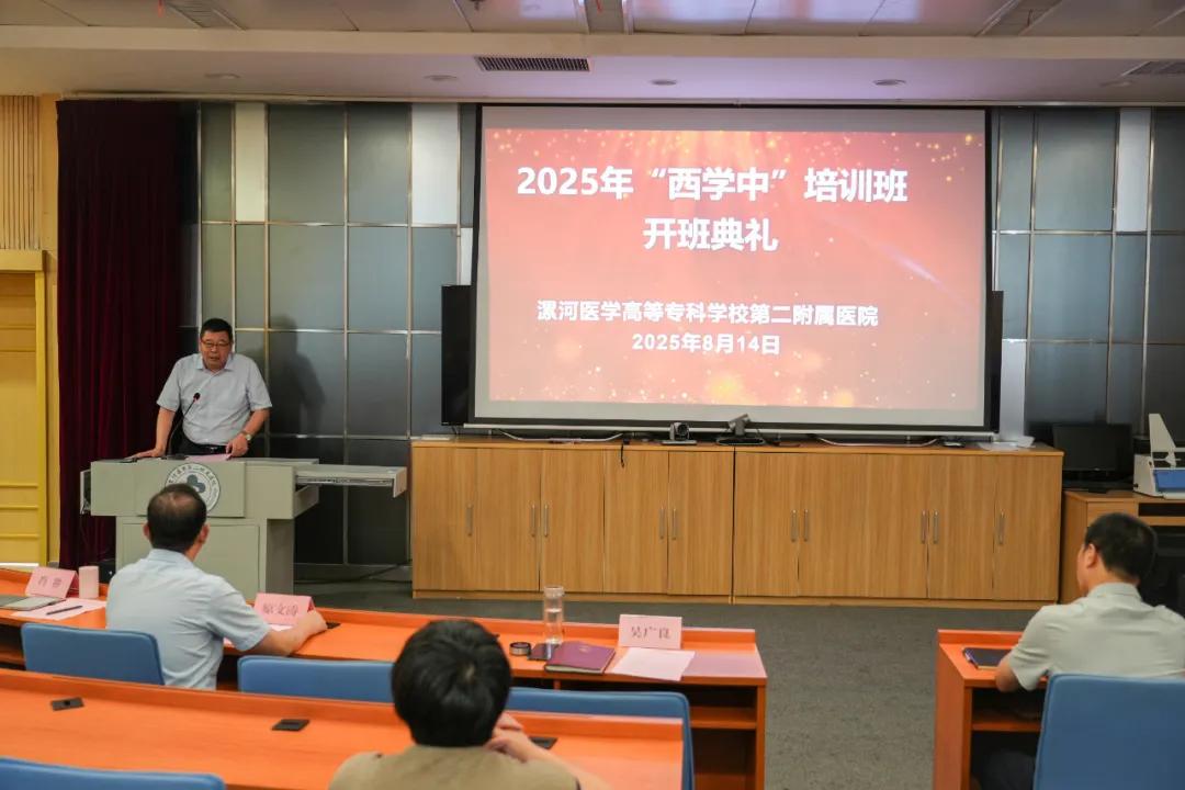 為貫徹落實(shí)河南省衛(wèi)生健康委《關(guān)于加強(qiáng)非中醫(yī)類別醫(yī)師學(xué)習(xí)中醫(yī)培訓(xùn)工作的通知》的文件精神,提高非中醫(yī)類別醫(yī)師的中醫(yī)藥臨床應(yīng)用水平,加快中西醫(yī)結(jié)合人才培養(yǎng),漯河醫(yī)專二附院(漯河市骨科醫(yī)院、漯河市立醫(yī)院)面向社會(huì)招收非中醫(yī)類別醫(yī)師學(xué)習(xí)中醫(yī)培訓(xùn)學(xué)員。8月14日,2025年度“西學(xué)中”培訓(xùn)班正式開班,共計(jì)41名本院及外院學(xué)員參加了開班典禮。