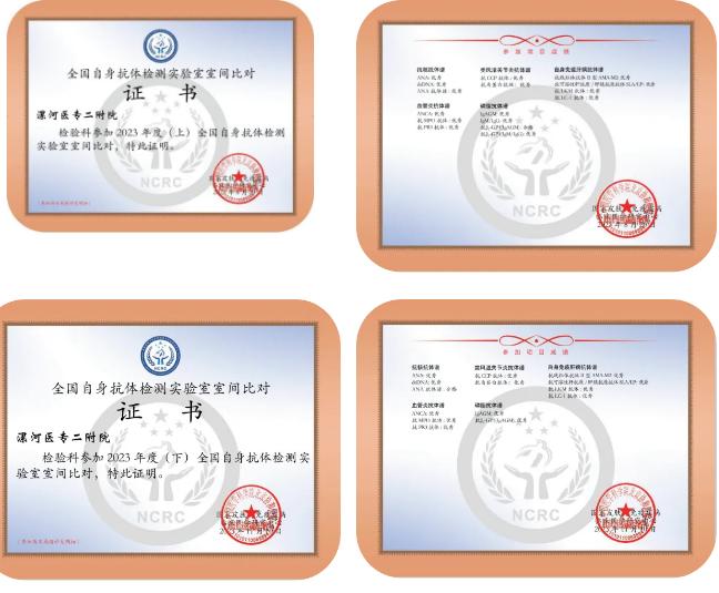 近日,漯河醫(yī)專二附院(漯河市骨科醫(yī)院、漯河市立醫(yī)院)檢驗(yàn)科自身免疫實(shí)驗(yàn)室在“國家皮膚與免疫疾病臨床醫(yī)學(xué)研究中心(NCRC)”組織的、北京協(xié)和醫(yī)院牽頭的全國自身抗體檢測(cè)實(shí)驗(yàn)室能力驗(yàn)證中,再次憑借卓越的檢測(cè)能力和穩(wěn)定的技術(shù)水平,斬獲合格證書。這已經(jīng)是自2023年以來,連續(xù)3年獲此殊榮,充分說明了醫(yī)院自身免疫實(shí)驗(yàn)室的檢測(cè)結(jié)果與全國251家實(shí)驗(yàn)室數(shù)據(jù)高度一致,達(dá)到國家級(jí)標(biāo)準(zhǔn)化水平,為臨床診斷提供了堅(jiān)實(shí)可靠的依據(jù)。