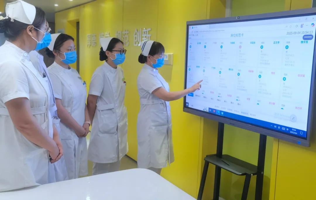 護士站前,一場交班會正在進行:智慧大屏上,患者信息實時更新,護理內(nèi)容分類顯示,重點項目一屏盡覽。告別傳統(tǒng)手寫白板,降低人工轉(zhuǎn)抄差錯,大家通過點擊和切換不同場景,共同了解當天的工作安排及注意事項。同時,互動大屏可以播放宣教資料,進一步豐富健康教育形式。