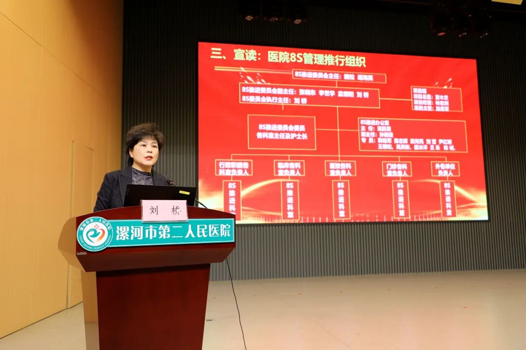 黨委副書記、院長胡海英宣布漯河市第二人民醫(yī)院8S精益管理項目正式啟動,標志著醫(yī)院在精益管理升級之路上邁出關(guān)鍵一步,全場響起熱烈掌聲。