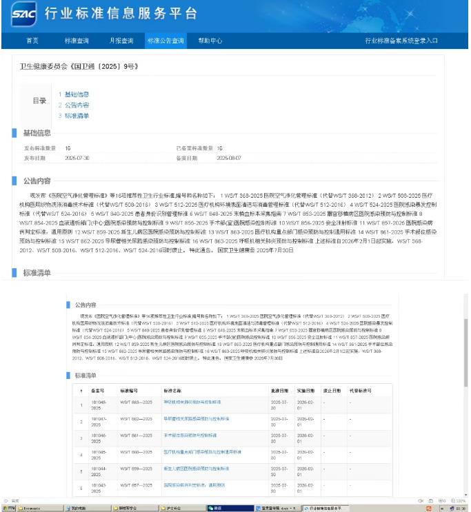 國家衛(wèi)生健康委員會(huì)近日正式發(fā)布《國衛(wèi)通〔2025〕9號(hào)》公告,公布并備案了16項(xiàng)推薦性衛(wèi)生行業(yè)標(biāo)準(zhǔn),其中14項(xiàng)重點(diǎn)圍繞醫(yī)院感染控制領(lǐng)域。該批標(biāo)準(zhǔn)將于2026年2月1日起全面實(shí)施,同時(shí),4項(xiàng)修訂前的舊版標(biāo)準(zhǔn)同步廢止。新標(biāo)準(zhǔn)的發(fā)布實(shí)施,對(duì)進(jìn)一步規(guī)范醫(yī)院感染管理流程、提升醫(yī)療質(zhì)量安全水平具有重要意義。