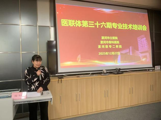 為持續(xù)深化醫(yī)聯(lián)體建設(shè),推動(dòng)優(yōu)質(zhì)醫(yī)療資源下沉,提升基層醫(yī)務(wù)人員專業(yè)技術(shù)水平,12月27日,漯河醫(yī)專二附院(漯河市骨科醫(yī)院、漯河市立醫(yī)院)舉辦第三十六期醫(yī)聯(lián)體專業(yè)技術(shù)培訓(xùn)會,來自召陵區(qū)、郾城區(qū)、源匯區(qū)、開發(fā)區(qū)等醫(yī)聯(lián)體單位醫(yī)務(wù)人員參加此次培訓(xùn)。