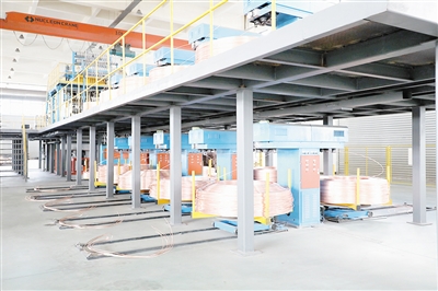 12月13日,記者在臨潁縣銅基新材料產(chǎn)業(yè)園看到,金普森公司的生產(chǎn)線正在有序運(yùn)轉(zhuǎn),擠壓成塊的再生銅投入廢舊銅熔化爐,隨后變成一盤盤色澤金黃的高純度銅。“公司主要生產(chǎn)銅線材、合金復(fù)合銅線等。這些產(chǎn)品在各類電氣、化學(xué)工業(yè)、射頻電纜等領(lǐng)域得到廣泛應(yīng)用。”臨潁物流園區(qū)管委會(huì)副主任王永強(qiáng)告訴記者。